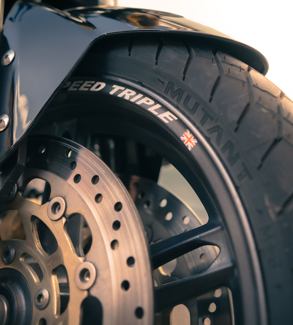 Le noir profond de la carrosserie absorbe la lumière, les emblèmes orange rappellent son héritage.